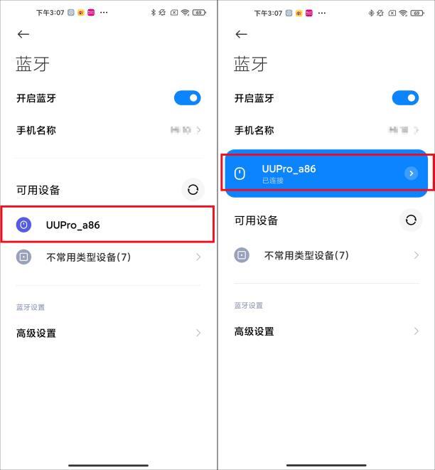 ②在手机蓝牙匹配列表中找到【UUPro_XXXX】设备,进行配对并连接。