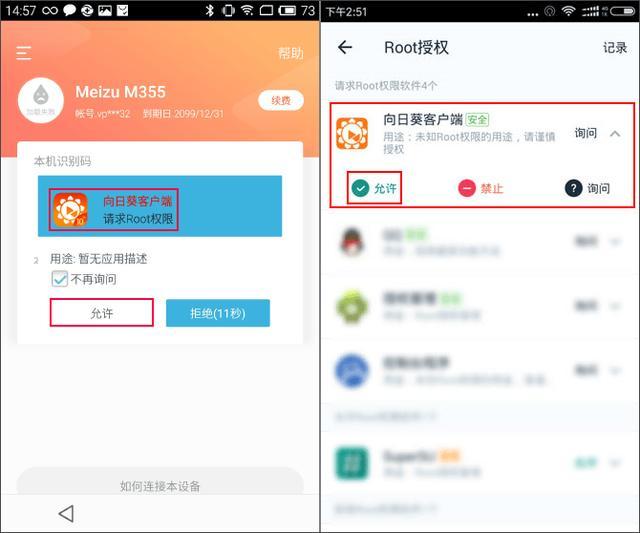 部分安卓手机由于系统原因,向日葵客户端不会显示请求Root权限弹窗。