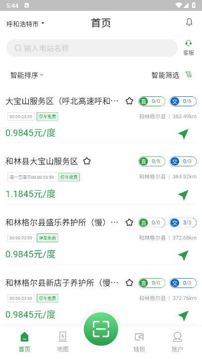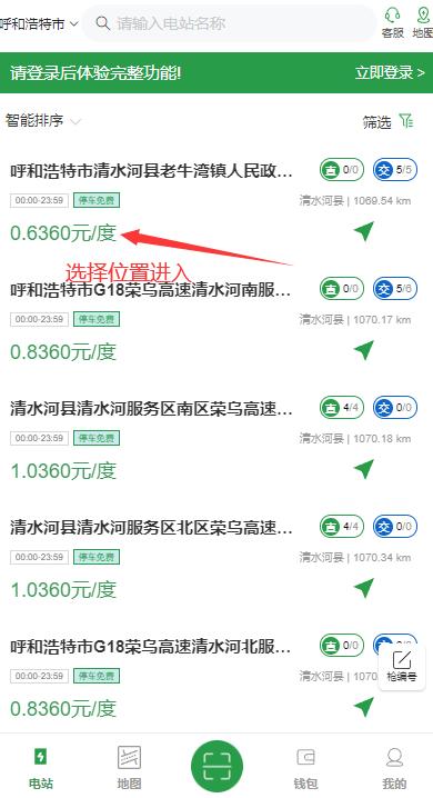 选择充电桩:浏览列表,选择一个合适的充电桩,点击进入详情页面。查看充电桩的详细信息,包括位置、距离、功率、空闲状态等。