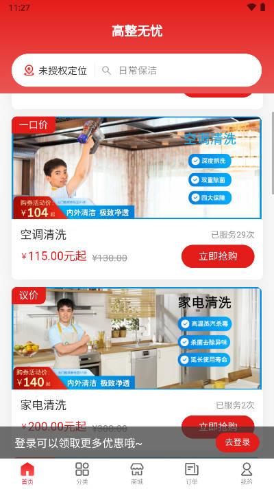 高整无忧软件安卓版(com.gzwyuser.benben)是一款非常好用的家政服务平台,这里面支持非常多的保洁服务,各种家政服务都有,一站式的服务平台,商家也是可以直接在这里面进行认证的。