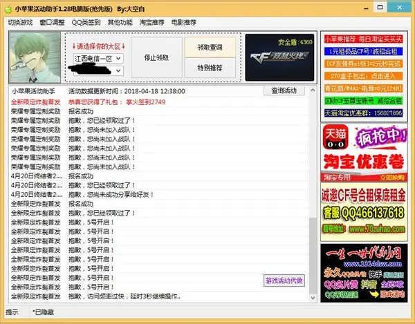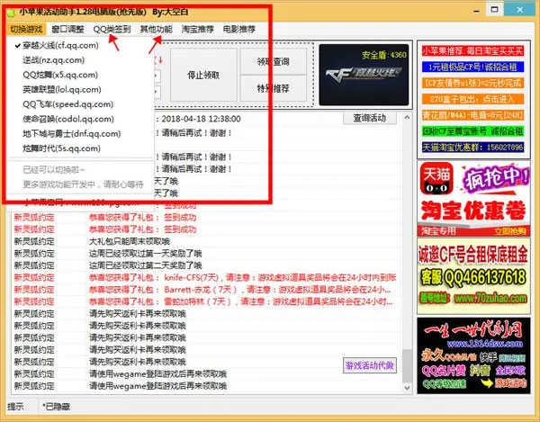小苹果活动系列助手是一款免费的活动装备领取必备工具, 支持多种游戏的活动, 其中包括CF活动领取、DNF活动领取、LOL活动领取、NZ活动领取、X5活动领取等, 是一款非常全面且方便实用的装备领取助手。