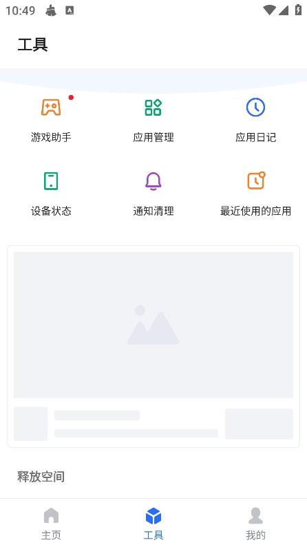 2、工具中集成了游戏助手、应用日记、设备状态、通知清理、空间释放等功能;
