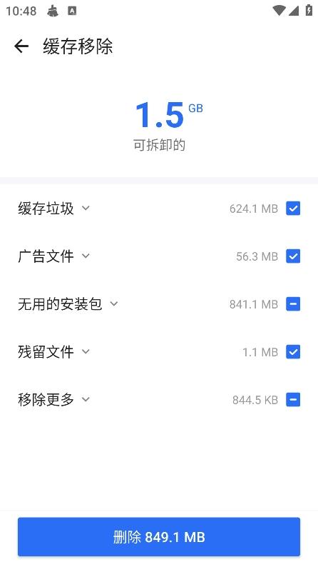 3、支持快速的移除缓存文件,可以从扫描的文件中,选择你不需要的文件进行删除。