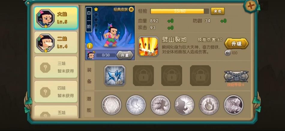 4、葫芦兄弟的能力得到很好的展现,释放专属技能的时候用特效镜头,多为不同的妖精可以收集扩充实力。