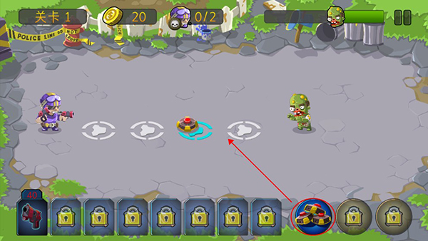 玩家可以点击右边地雷进行放置,僵尸踩到会爆炸,并且造成伤害。