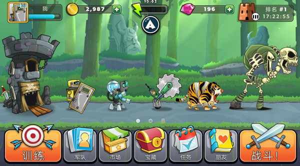 3、我们在通关的时候要先制造一个最初始的小兵,然后去抗一会伤害,然后狠狠的升级加速能量(制造小兵的能量)然后在制造一个骑士这种能抗的肉盾再去抗伤害。然后接着升级能量,我们只要拖到升级能量满就可以快速制造小兵,后期依靠快速制造能量的优势可以直接通关,后面的小兵是源源不断的,而能量也是源源不断的增加。这时一个最实用的策略,我用这种策略从新手玩成大神,实用不实用你们可以自己尝试一下
