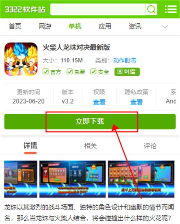火柴人龙珠对决2023最新版具有简单直观的控制方式,使得新手也能够轻松上手,游戏中的快速连招和技能组合可以给玩家带来刺激的游戏体验。此外,游戏可能还包含多种游戏模式,例如单人模式、多人对战、生存模式等,以增加游戏的乐趣和挑战性。感兴趣的小伙伴还在等什么,快快来下载体验吧!