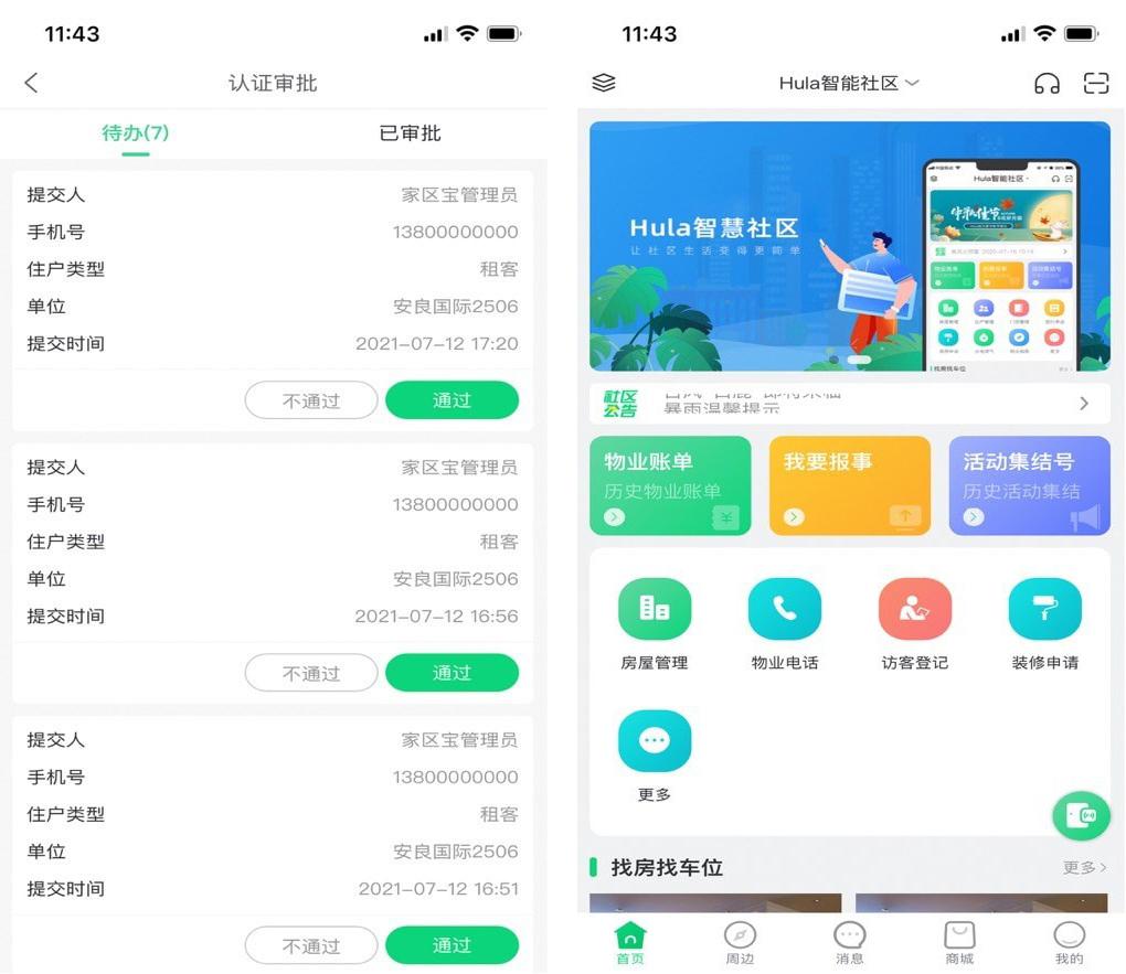 Hula家区宝平台基于服务物管,方便住户的原则,为物管提供高效、智能、安全的人性化管理服务,为住户带来便捷、健康、有趣的智慧生活体验,并联合社区商家致力打造服务、管理、商业一体化的智慧社区生态圈。