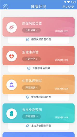 一对一健康评测: 提供免费且个性化的健康测评工具,帮助用户随时掌握自己及家人的健康状态。
